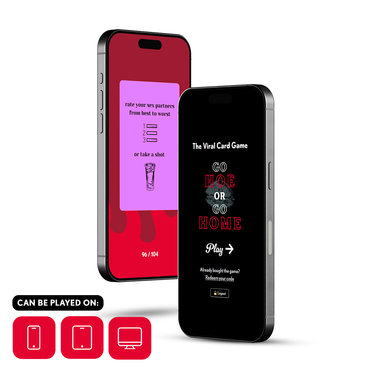 The ultimate party starter for naughty players, Go Hoe or Go Home Online Game brings your favorite 104 spicy questions and dares straight to your screen. Play on your phone, tablet, or computer and watch any night go from chill to completely unhinged in minutes. Expect wild confessions, outrageous dares, and plenty of shots before it’s over.